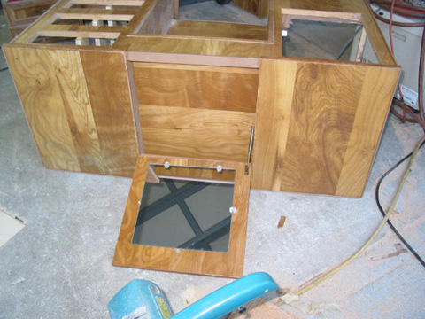 Largest cabinet with fridge opening: Same thing viewed from the top. The top of photo is the fridge cabinet. I replaced the shelf there too.
