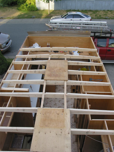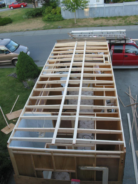 Roof framing: Another shot - Note the slope from the 1X3 runners down to the edge.