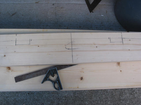 Rafter layout: Then I mark out the desired shape.