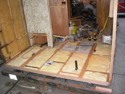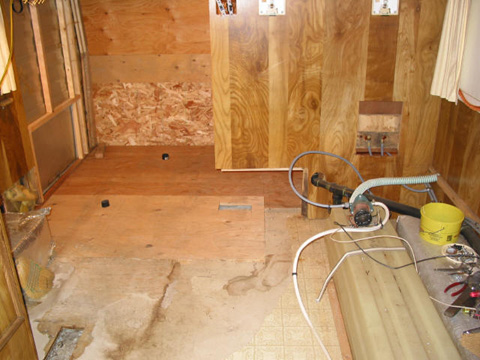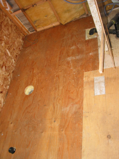 Floor sheeted: Finally! New plywood down on the floor. Sure is a lot more solid now.
