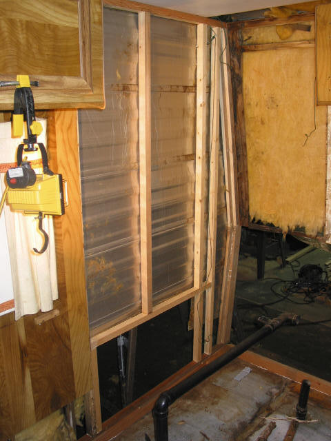Overview of corner: Most of the bad wood is stripped out now. I had to use a broom and dustpan more than a hammer & pry bar It was rotted to nothing.