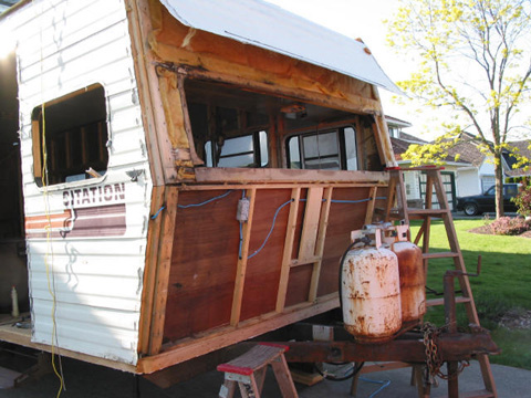 | This page I wrote for my old rv website RVforSaleGuide.com before developing the Vanabode as the best travel vehicle for cheap easy long term road trips. People still like big rv's despite the much greater cost and trouble to operate, so here's what I know about them. Travel Trailer Water Damage page 7RV trailer repair Rebuild project travel trailer, floor water damage, roof leaks, wall damage