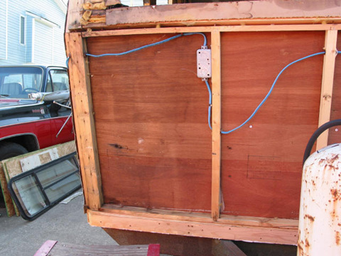 Front inside: After removing the paneling, the water damage was visible. The top damage is from the roof leaking.
