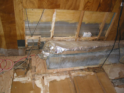 Top of wall: The whole top plate of the wall has to be replaced. The top of the studs are rotten, too.