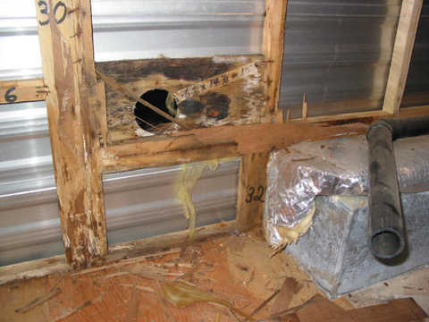 Top of side wall: The whole top plate of the wall needs replacing and most of the studs.