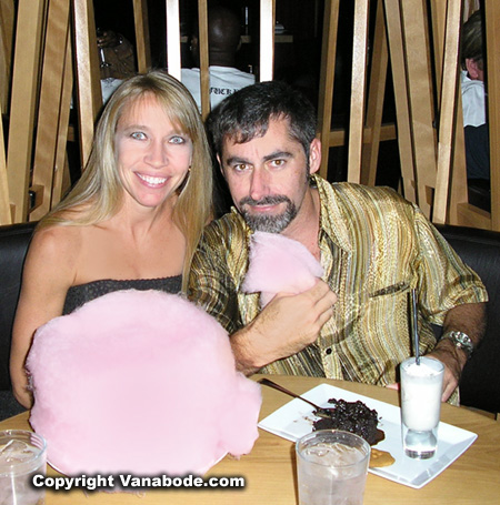 Above: Picture of the Caesars Palace Forum Shops animatronics show. The show draws a crowd several times each day. Las Vegas is packed full of things to do. From shopping, roller coaster rides, arcades, free outside shows, Las Vegas shows, the activities are endless for all ages. Some other Las Vegas restaurants we enjoyed include Hash House a Go Go, Sahara Buffet, Bellagio Buffet, Cheesecake Factory, Rio Buffet, McCormick & Schmick's, Outback Steakhouse, Paris Le Village Buffet, Royal Persis, The Grand Lux Cafe, Rainbow Bar and Grill, Mimis Cafe, McMullans Irish Pub, Paymons Mediterranean, Ruth's Chris Steak House, Cozymels, Bahama Breeze, Marie Callenders, Peppermill, Hank's Fine Steaks and Martinis at Green Valley Ranch Resort Casino, Shalimar Fine Indian Cuisine, The Original Pancake House, Draft House, Wild Wild West, Metro Pizza, Lotus of Siam, Koji Sushi Bar and Chinese Restaurant, Pamplemousse Las Vegas, Burger Bar, all-you-can-eat BBQ at the Salt Lick at Red Rock Resort Casino, Landry's, Paradise Cafe, Planet Hollywood, The Steakhouse at Circus Circus, MGM Buffet, Gandhi, Chipotle, El Pollo Loco... Above: Picture of Jason and Kelly celebrating Kelly's 39th birthday at Simon Kitchen and Bar inside the Hard Rock Hotel and Casino in Las Vegas. Delicious Sea Bass (like on Napoleon Dynamite), Curry chicken, superb crab cake, blue cheese bread, followed by Cotton Candy Cloud and chocolate delight paired with a vanilla shake. Things have changed a little over the past 10 years besides the addition of new casinos. 1) added over 10 world class, $25 cover, upscale movie star level night clubs, 2) addition of 5 million dollar condos - real estate prices have doubled in 4 years, 3) most casino shows have gotten more risqué making Las Vegas less kid friendly than ever - even the billboards and ads in the local papers are rated PG-13, 4) free stuff is harder to come by, town is becoming more full featured and less about gambling. Joke: Catholic churches - This may come as a surprise to those of you not living in Las Vegas, but there are more Catholic churches there than casinos. Not surprisingly, some worshippers at Sunday services will give casino chips rather than cash when the basket is passed. Since they get chips from so many different casinos, the churches have devised a method to collect the offerings. The churches send all their collected chips to a nearby Franciscan Monastery for sorting and then the chips are taken to the casinos of origin and cashed in. This is done by the chip monks. Two of our favorite places not too far from Las Vegas are Mount Charleston which is 30 degrees cooler year round, and Laughlin which sits on the Colorado River. American Road Trips - reviews & pictures of places we visited on $20 a day - food, gas and lodging.
