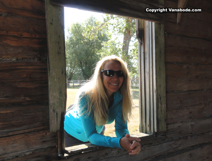 Above: Camping with a pretty woman makes every view better! Here we explore antique buildings in Roseberry.